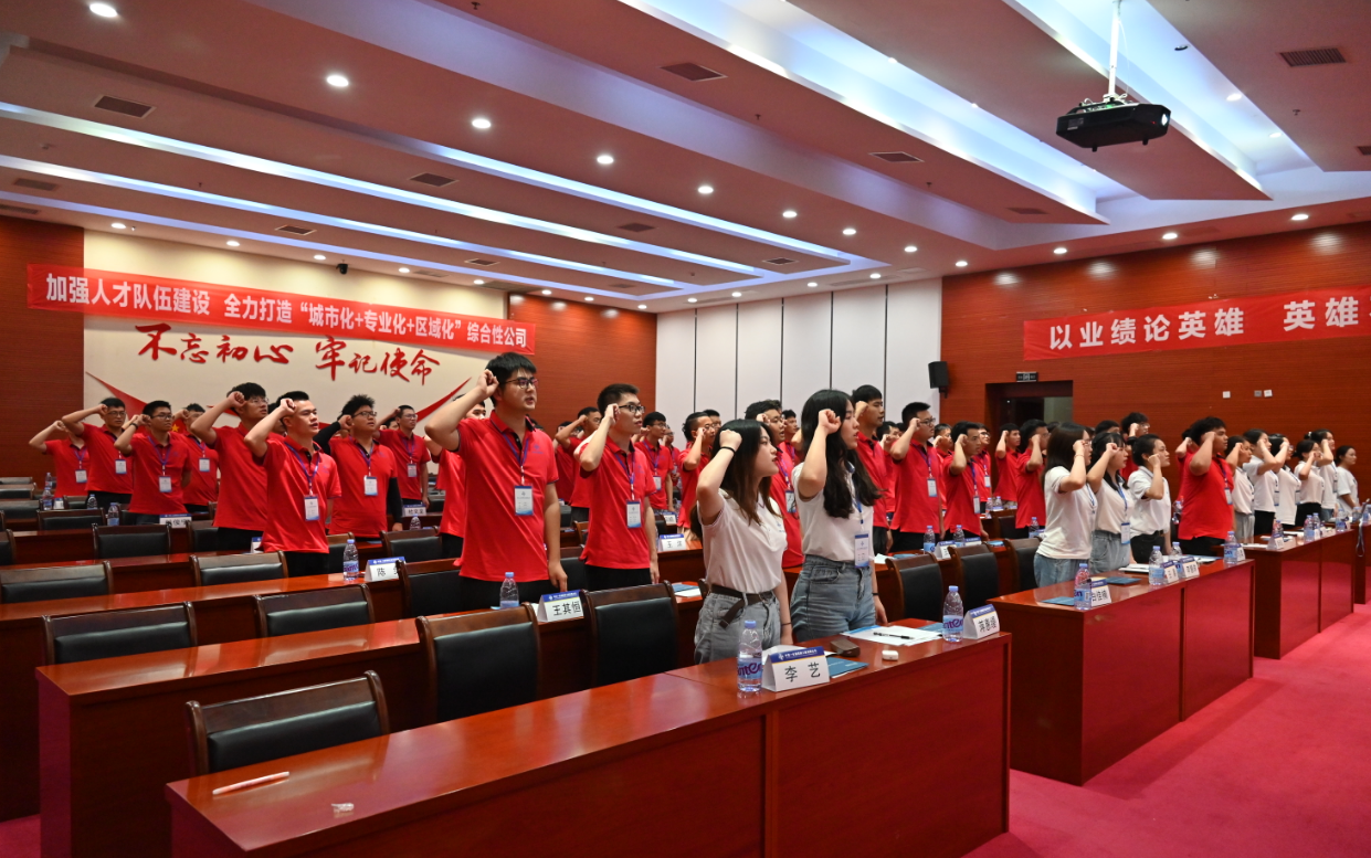 我莊嚴宣誓:“胸懷理想,堅定信念;忠誠企業,堅守崗位;崇德崇學,向上向善;秉承“交融天下,建者無疆”的企業精神,踐行“自強奮進,永爭第一”的光榮傳統,堅守核心價值觀,弘揚青春正能量,與時代同步伐,與企業齊奮進;不忘入職初心,牢記奮斗使命,筑夢青春征程,為公司高質量發展貢獻青春力量!”