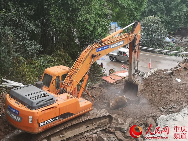 7月16日,萬州區遭遇大暴雨襲擊,時段內降水量達到100mm左右,國道318線萬州境內多處山體垮塌,大小塌方地段有40多處。其中,山洪沖垮了國道318線與萬州長嶺鎮龍立村鄉道交界處的原有擋墻,形成長約60米、足有4000多方的大面積滑坡體,造成318國道臨時斷通。險情發生后,中交一公局三公司萬州項目部集結挖掘機、裝載機、沖擊錘等專業裝備,第一時間趕赴現場展開搶通工作。本著方量先小后大、道路先通后暢的原則,依次實現絕大部分路段迅速初通,然后集中機械力量對兩處較大規模塌方路段進行重點突擊搶通。