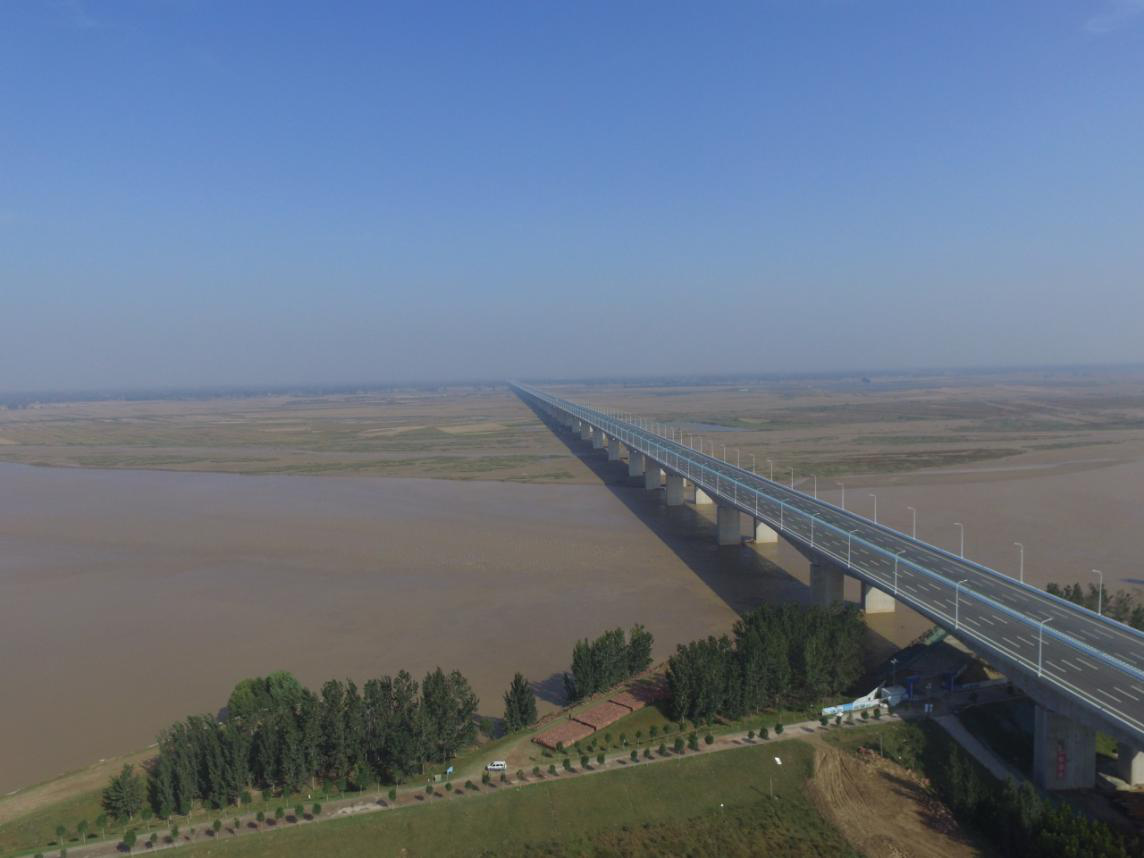 國道107官渡黃河大橋工程位于河南新鄉市,全長30.3公里,全線采用一級公路技術標準,設計時速100公里。其中主橋長2325米,是國內首座將體外預應力技術應用于大規模連續梁的特大橋,也是目前國內同類橋梁中體外束根數最多、噸位最大的特大橋,具有直徑超長樁基、安全管理難度大、環保要求高等施工難點。
